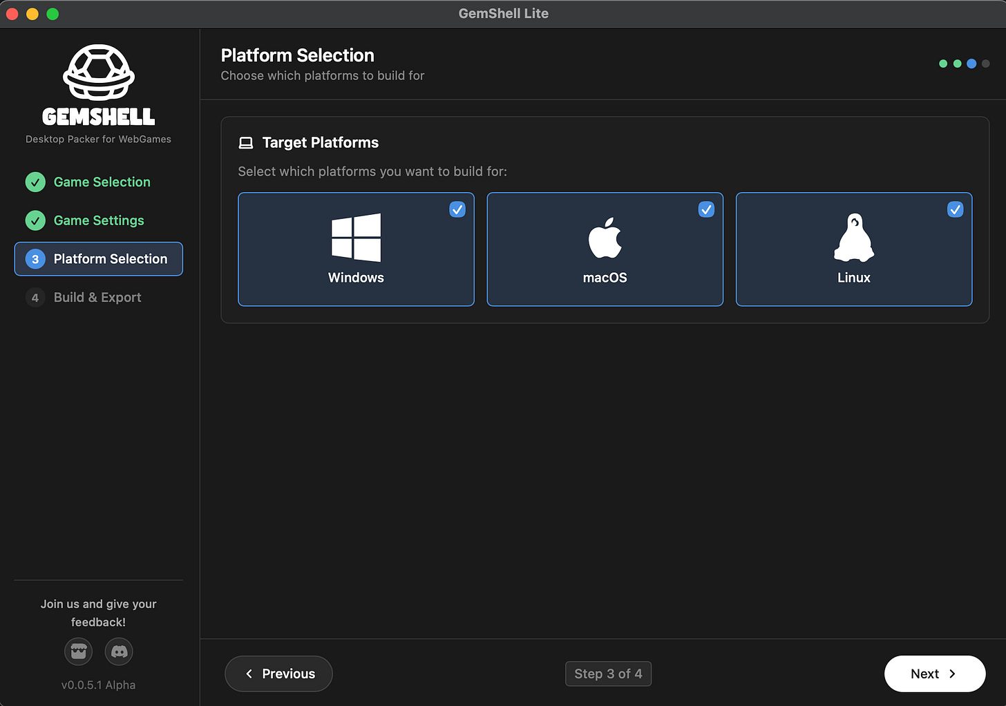 However, it’s important to consider that GemShell is built upon Neutralino, a technology that uses the system’s webview to render the game. The web engine used is different on each operating system, therefore, you don’t have a guarantee that things will render the same way and perform the same way on all three platforms.