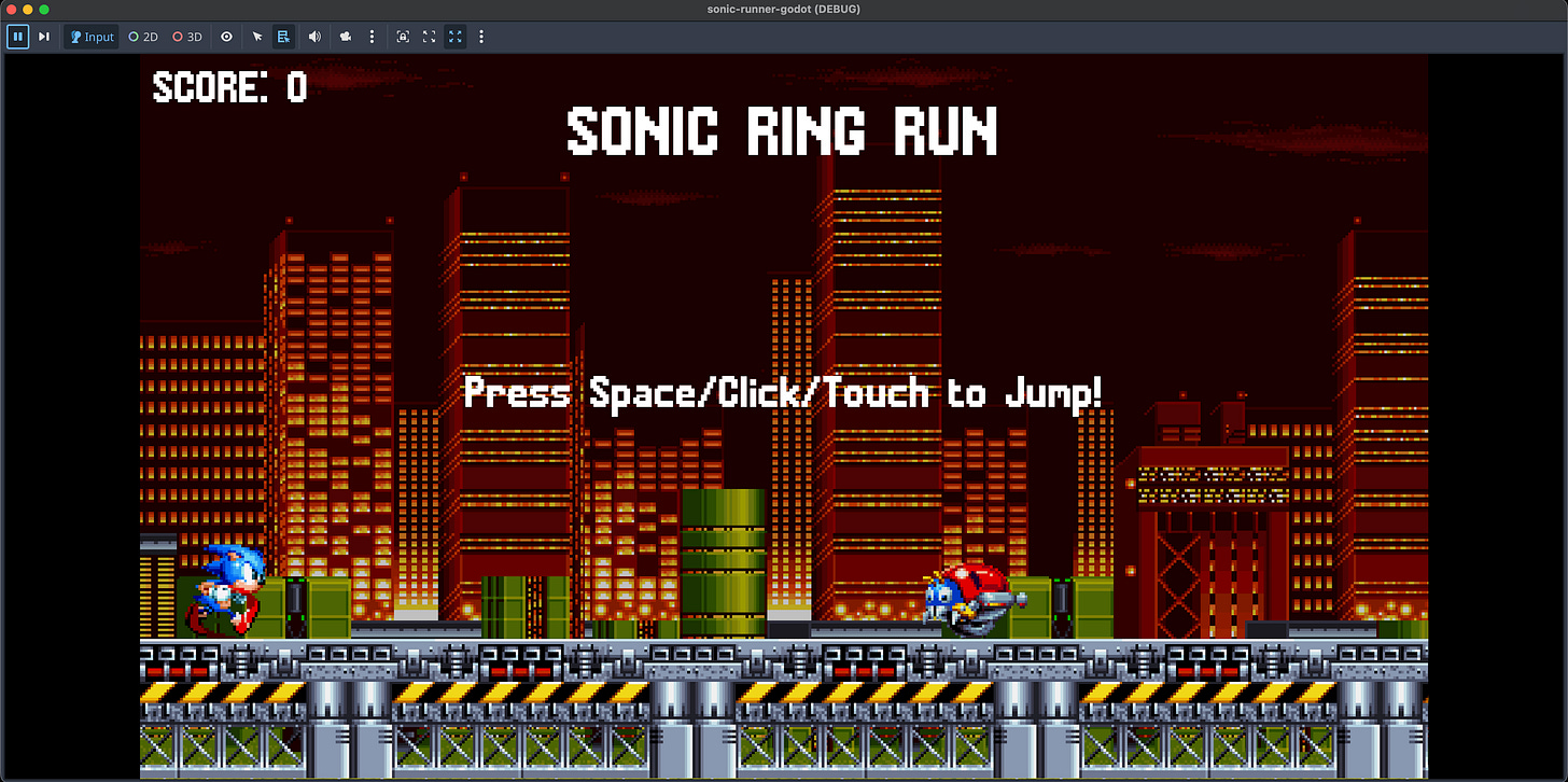 Godot 4 version : https://jslegend.itch.io/sonic-ring-run-godot-version
