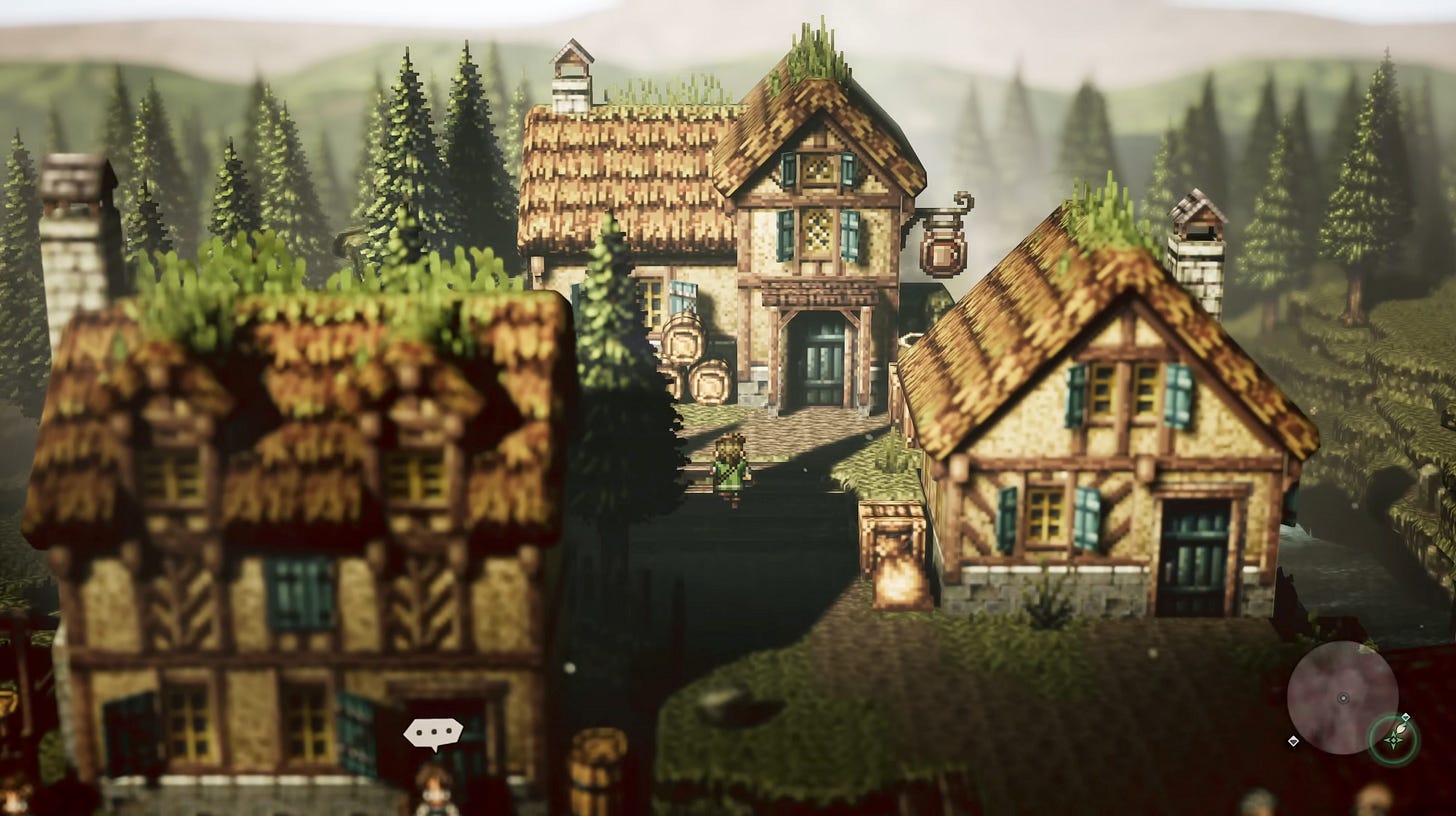 In conclusion, I think Godot is the right choice for my RPG project. I also want to gain mastery of the engine so I can eventually experiment with creating a game that uses 3D models for environments and props, but 2D sprites for characters. Godot makes developing this kind of game far less daunting. This style has been popularized recently by Octopath Traveler using the term HD-2D, although my real inspiration comes from the DS Pokémon era, which used a similar aesthetic without the over-the-top post-processing effects seen in Octopath Traveler.